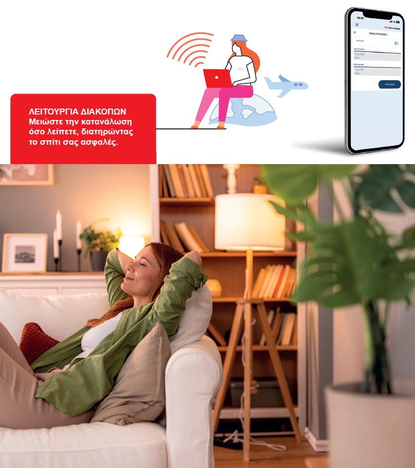 - όταν πηγαίνετε διακοπές, ενεργοποιήστε τη λειτουργία διακοπών και διατηρήστε τον έλεγχο.