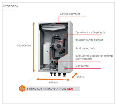 Οι υδραυλικές μονάδες E-Gen είναι εξοπλισμένες με μαγνητικό φίλτρο για την παραγωγή των κύριων εξαρτημάτων της αντλίας θερμότητας.