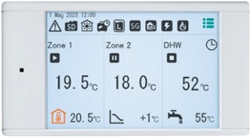 Είναι επίσης δυνατό να ελέγχεται η Ζώνη 1 μέσω μιας βαλβίδας ανάμιξης, μια ιδανική λύση στην περίπτωση του αδρανειακού ρυθμιστή και του έξυπνου δικτύου, δίνοντας προτεραιότητα στη θερμότητα που αποθηκεύεται στον αδρανή.