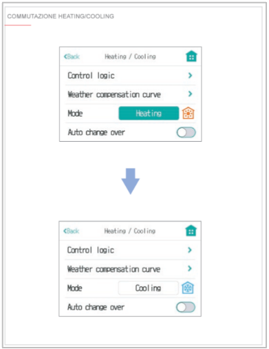 Η λήψη ενός καθαρού σήματος στην είσοδο IN13 θα μεταβεί τώρα από τη λειτουργία θέρμανσης στη λειτουργία ψύξης.