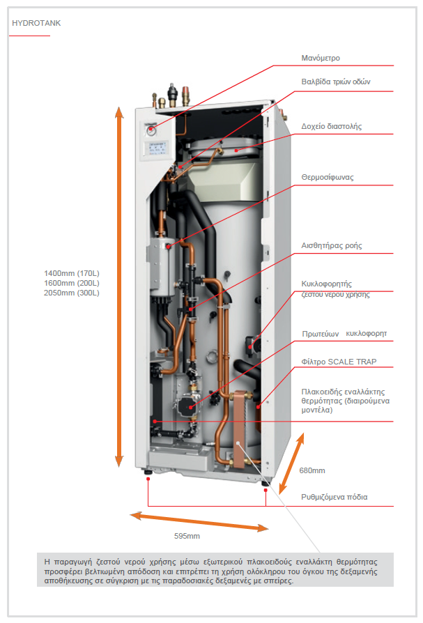 Η Hydrotank είναι μια απλή και πρακτική λύση που ενσωματώνει έναν κύλινδρο ζεστού νερού χρήσης 170, 200 και 300 λίτρων.