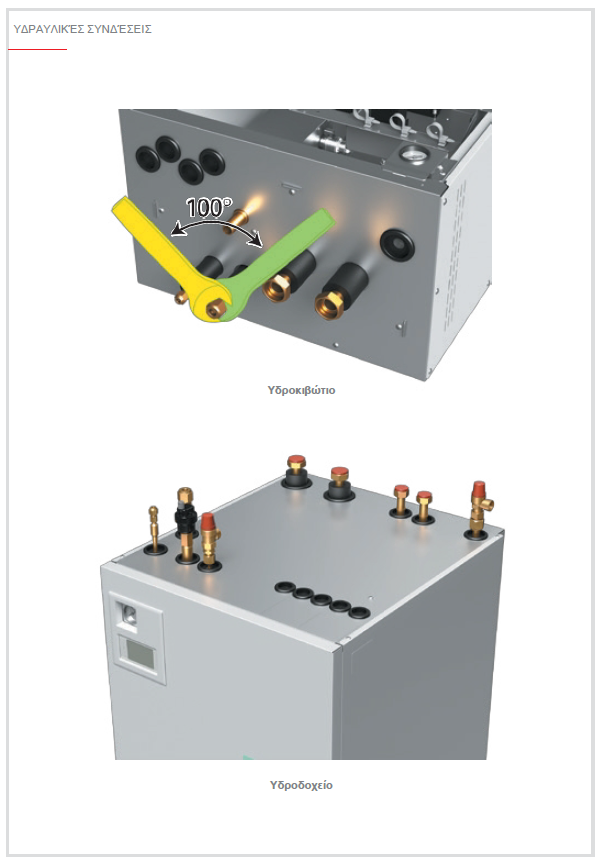 Οι υδραυλικές συνδέσεις είναι τώρα ευθυγραμμισμένες και σε απόσταση μεταξύ τους και τα παξιμάδια με θηλυκό σπείρωμα 1 ίντσας διευκολύνουν τις εργασίες εγκατάστασης. Συνιστώνται βαλβίδες απομόνωσης για τη συντήρηση.