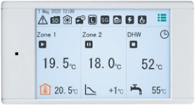 Είναι επίσης δυνατό να ελέγχεται η Ζώνη 1 μέσω μιας βαλβίδας ανάμιξης, μια ιδανική λύση στην περίπτωση του αδρανειακού ρυθμιστή και του έξυπνου δικτύου, δίνοντας προτεραιότητα στη θερμότητα που αποθηκεύεται στον αδρανή.
