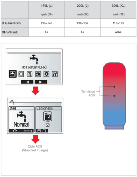 - ενσωματωμένη αποθήκευση 170, 200 ή 300 λίτρων για την κάλυψη ποικίλων αναγκών ζεστού νερού χρήσης